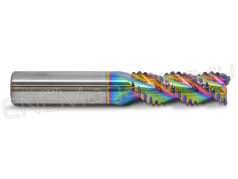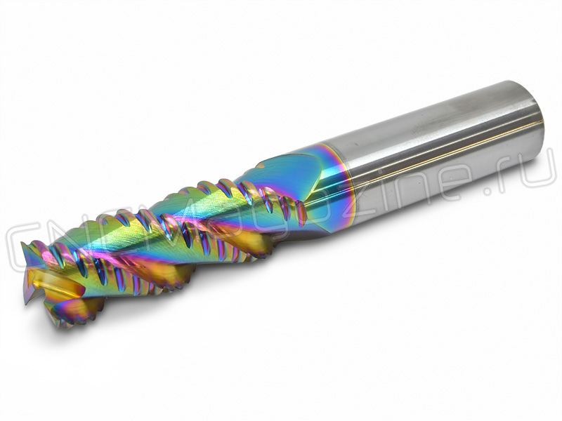 Твердосплавная фреза для алюминия с DLC покрытием, для черновой обработки. Покрытие DLC (алмазоподобный углерод) обладает высокой твердостью, сопротивлением к абразивному износу и очень низким коэффициентом трения. Это способствует длительному сохранению остроты режущих кромок, практически полному отсутствию налипания стружки на рабочие поверхности фрезы.