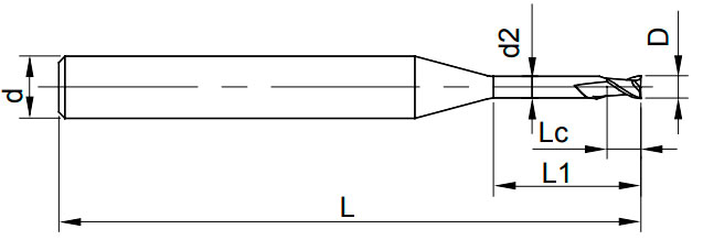 Фреза монолитная твердосплавная по металлу для фрезерного станка, концевая. Диаметр - 2 мм. Длина рабочей части - 3 мм, общая длина - 55 мм. Диаметр хвостовика - 4 мм. Угол наклона спирали 30°. Количество зубьев - 2. Шейка R - 1.92 мм. Группа обрабатываемых материалов: H.
