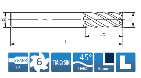 Фреза монолитная твердосплавная по металлу для фрезерного станка, концевая. Диаметр - 12 мм. Длина рабочей части - 60 мм, общая длина - 150 мм. Диаметр хвостовика - 12 мм. Угол наклона спирали 45°. Количество зубьев - 6. Группа обрабатываемых материалов: P, H.