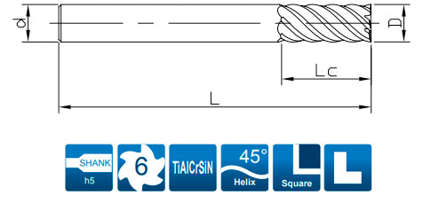 Фреза монолитная твердосплавная по металлу для фрезерного станка, концевая. Диаметр - 6 мм. Длина рабочей части - 15 мм, общая длина - 50 мм. Диаметр хвостовика - 6 мм. Угол наклона спирали 45°. Количество зубьев - 6. Группа обрабатываемых материалов: P, H.