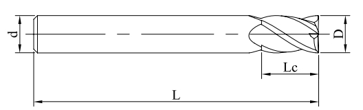 Фреза монолитная твердосплавная по металлу для фрезерного станка, концевая. Диаметр - 4 мм. Длина рабочей части - 6 мм, общая длина - 50 мм. Диаметр хвостовика - 4 мм. Угол наклона спирали 35°. Количество зубьев - 4. Группа обрабатываемых материалов: M (P, K,S).