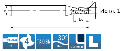 Фреза монолитная твердосплавная по металлу для фрезерного станка, радиусная. Диаметр - 10 мм, радиус - 1 мм. Длина рабочей части - 25 мм, общая длина - 75 мм. Диаметр хвостовика - 10 мм. Угол наклона спирали 30°. Количество зубьев - 4. Группа обрабатываемых материалов: P, H.