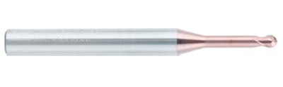 Фреза монолитная твердосплавная по металлу для фрезерного станка, сферическая. Диаметр - 0.4 мм. Длина рабочей части - 3 мм, общая длина - 50 мм. Диаметр хвостовика - 4 мм. Угол наклона спирали 30°. Количество зубьев - 2. Группа обрабатываемых материалов: P, N, H.