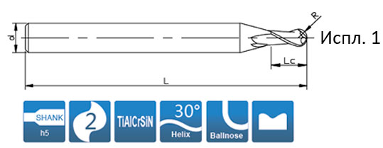 Фреза монолитная твердосплавная по металлу для фрезерного станка, сферическая. Диаметр - 8 мм, радиус - 4 мм. Длина рабочей части - 12 мм, общая длина - 100 мм. Диаметр хвостовика - 8 мм. Угол наклона спирали 30°. Количество зубьев - 2. Группа обрабатываемых материалов: P. H.