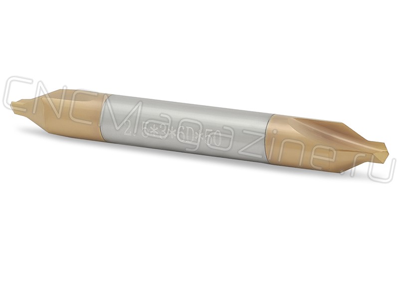 Сверло центровка 2.5 мм, двухстороннее, твердосплавное. Тип A, без предохранительного конуса, со спиральными стружечными канавками. Правое исполнение (правосторонняя спираль).