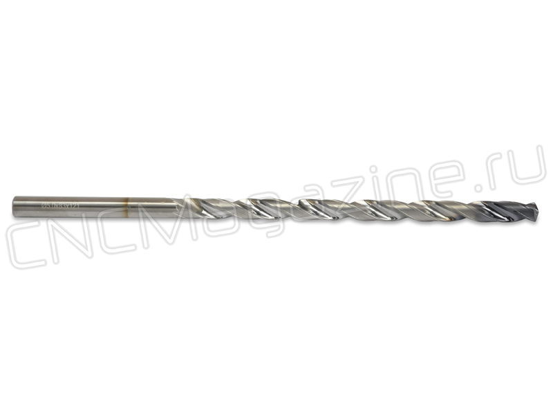 Сверло спиральное из твердого сплава, с цилиндрическим хвостовиком. Диаметр сверла 5 мм, длина рабочей части 83 мм, общая длина 121 мм.