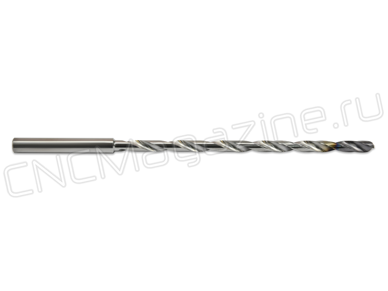 Сверло спиральное из твердого сплава, с цилиндрическим хвостовиком. Диаметр сверла 4.5 мм, длина рабочей части 100 мм, общая длина 140 мм.