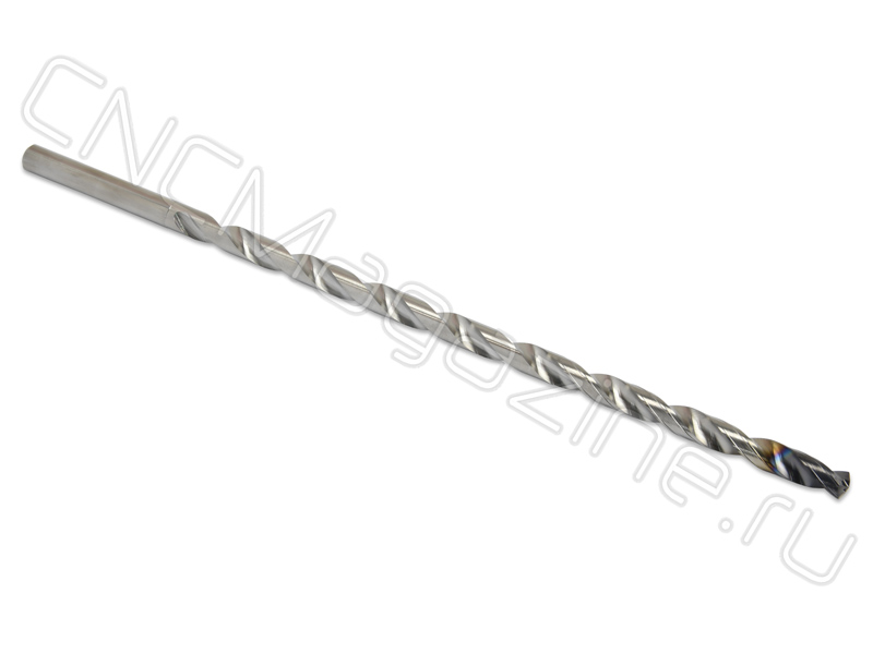 Сверло спиральное из твердого сплава, с цилиндрическим хвостовиком. Диаметр сверла 6 мм, длина рабочей части 144 мм, общая длина 182 мм.