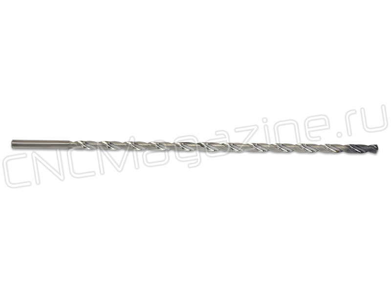 Сверло спиральное из твердого сплава, с цилиндрическим хвостовиком. Диаметр сверла 8 мм, длина рабочей части 256 мм, общая длина 294 мм.