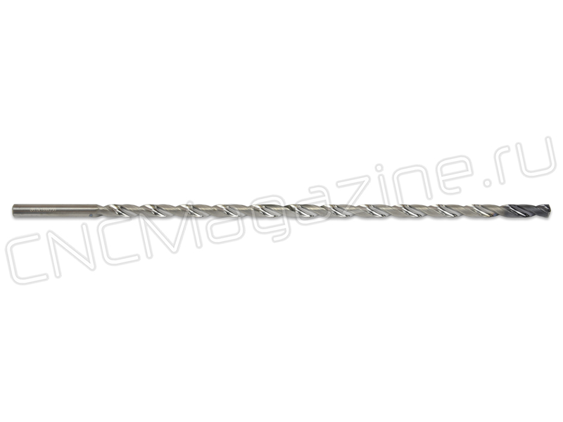 Сверло спиральное из твердого сплава, с цилиндрическим хвостовиком. Диаметр сверла 5 мм, длина рабочей части 169 мм, общая длина 200 мм.
