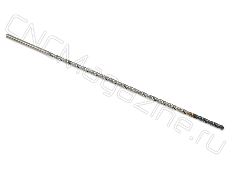 Сверло спиральное из твердого сплава, с цилиндрическим хвостовиком. Диаметр сверла 3 мм, длина рабочей части 145 мм, общая длина 185 мм.