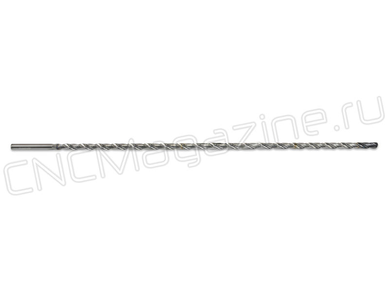 Сверло спиральное из твердого сплава, с цилиндрическим хвостовиком. Диаметр сверла 5 мм, длина рабочей части 267 мм, общая длина 299 мм.
