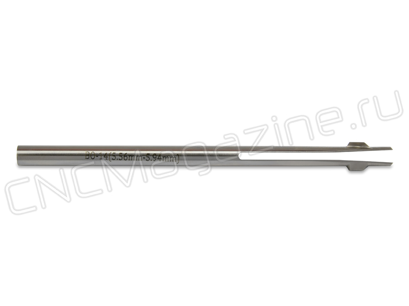 Нижний конец лезвия имеет угол 45 градусов, верхний конец – 33 градуса, технологический паз – под углом 6 градусов. Точность диаметра хвостовика зенковки BO-14, BO-36: +0 и -0,03 соответственно. Два рабочих лезвия.
