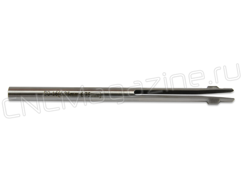 Нижний конец лезвия имеет угол 45 градусов, верхний конец – 33 градуса, технологический паз – под углом 6 градусов. Точность диаметра хвостовика зенковки BO-14, BO-36: +0 и -0,03 соответственно. Два рабочих лезвия.
