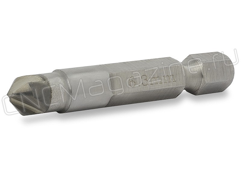 Зенковка 6.3 мм, стандарт DIN335, форма C (коническая зенковка с шестигранным хвостовиком, с тремя режущими гранями 90°).