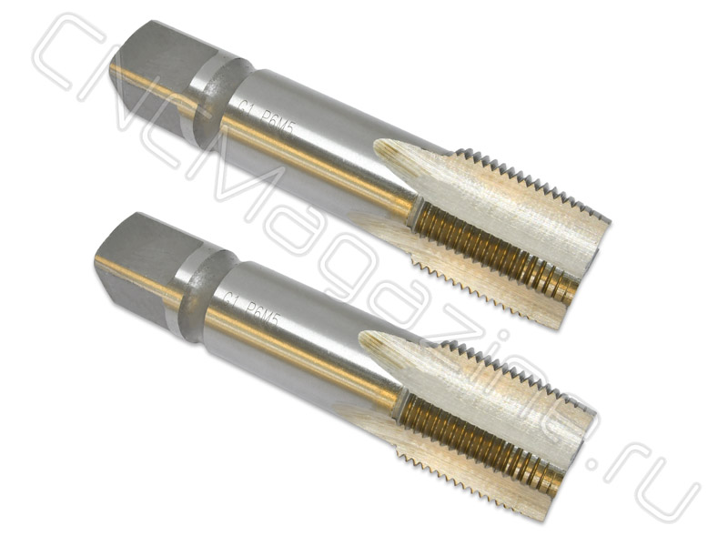 Машинный ручной метчик для нарезания трубной цилиндрической резьбы. Комплект из 2 шт.