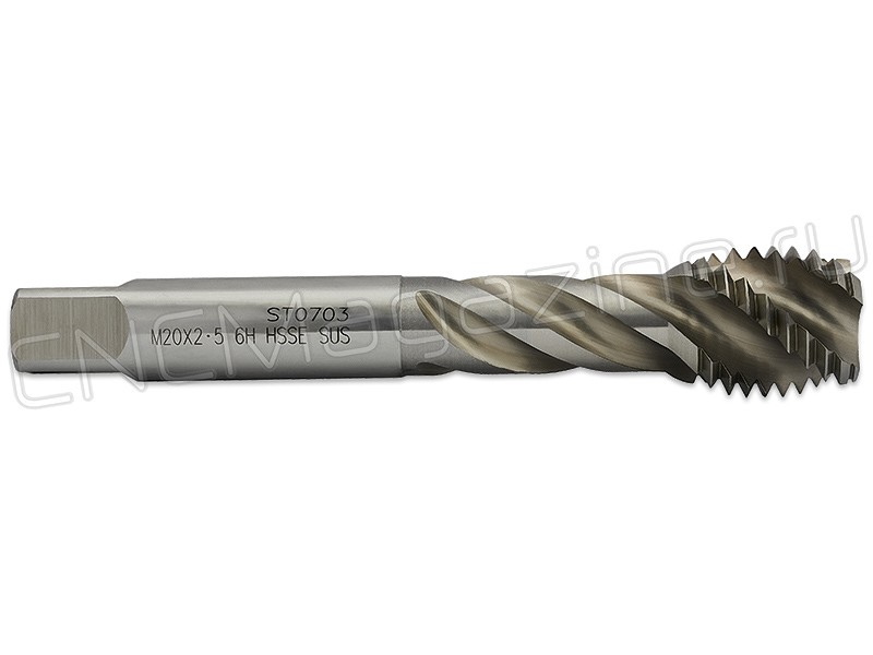 Метчик с резьбой М20 шаг 2.5 мм, HSS-E SUS машинный для глухих отверстий. Обработка материалов до 18 HRC.