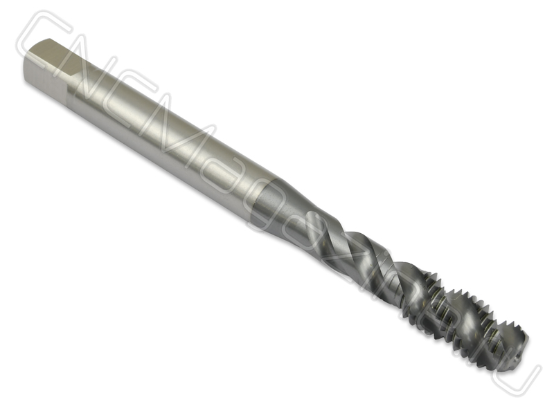 Многофункциональный универсальный машинный метчик из стали HSSE-Co со спиральной стружечной канавкой. С покрытием TiCN. Для глухих отверстий. Угол спирали фрезы 45 градусов.