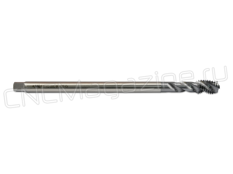 Многофункциональный универсальный машинный метчик из стали HSSE-Co со спиральной стружечной канавкой. С покрытием TiCN. Для глухих отверстий. Угол спирали фрезы 45 градусов.