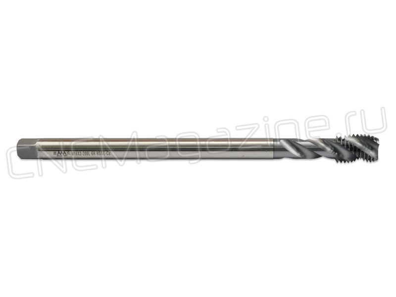 Многофункциональный универсальный машинный метчик из стали HSSE-Co со спиральной стружечной канавкой. С покрытием TiCN. Для глухих отверстий. Угол спирали фрезы 45 градусов.
