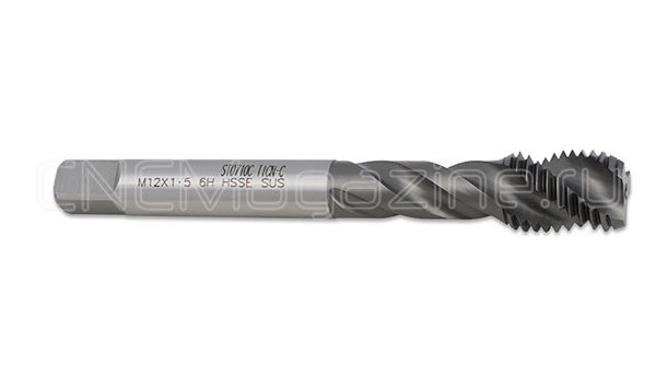 Метчик из быстрорежущей стали HSS-E со спиральной стружечной канавкой с углом спирали 38 градусов. Для глухих отверстий. Для нарезания метрической резьбы М12 c шагом 1.5 мм. С покрытием SUS TiAlN.