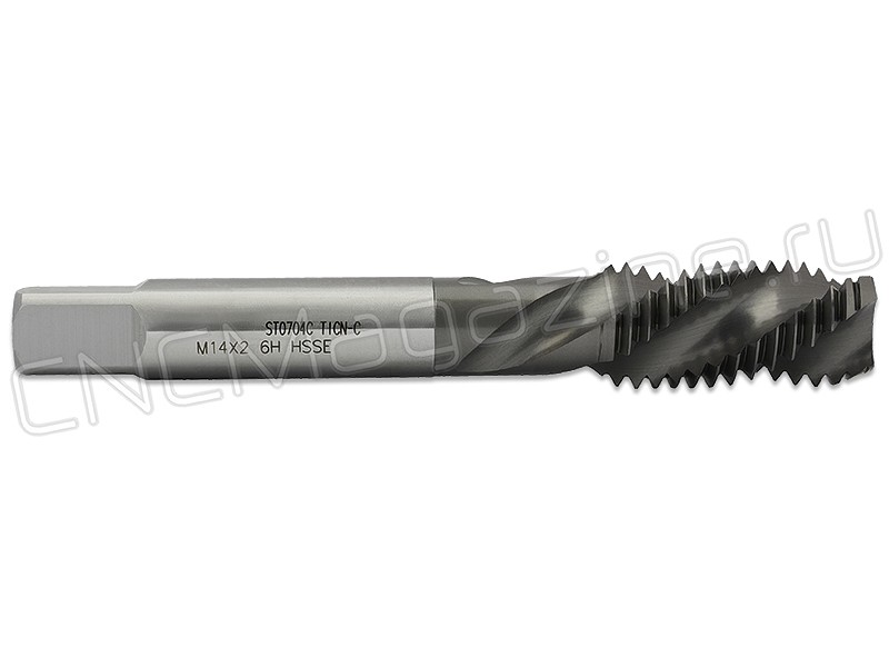 Метчик с левой резьбой М14 шаг 2 мм, HSS-E TiALN машинный для глухих отверстий. Обработка материалов до 20 HRC.