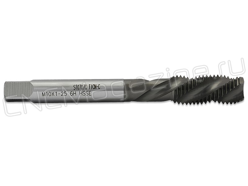 Метчик с левой резьбой М10 шаг 1.25 мм, HSS-E TiALN машинный для глухих отверстий. Обработка материалов до 20 HRC.