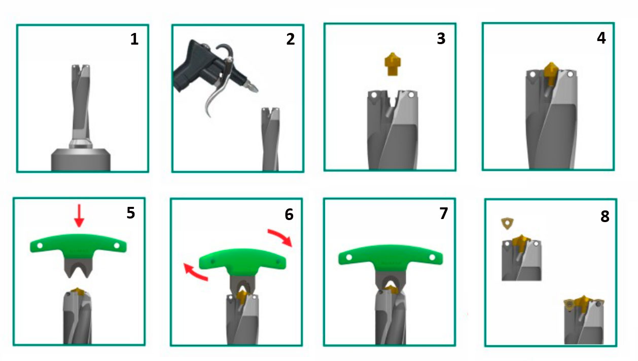 Специальная геометрия стружколома головки обеспечивает правильное формирование стружки, что гарантирует хорошее качество поверхности и высокую эффективность, даже при сверлении глубоких отверстий.
