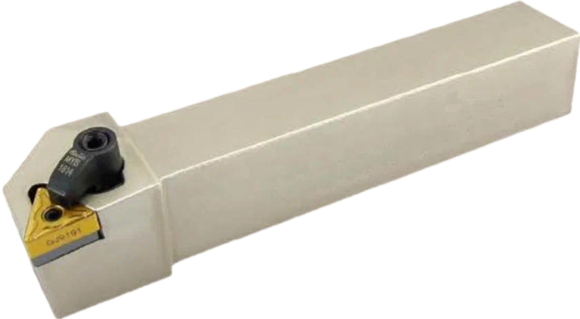 Резец токарный наружного точения по металлу со сменными пластинами. Для пластин CN ** 1204**. Державка токарная с креплением типа D (двойной прижим кронштейном). С углом в плане 95°. Державки для токарных пластин для продольного точения и подрезки торца.
