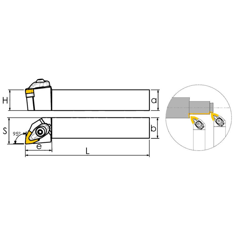 Резец токарный DWLNL2525M08 фирмы Sant предназначен для наружного точения по металлу с использованием сменных твердосплавных пластин WN.. 0804.. (в комплект поставки не входят и приобретаются отдельно). Державка токарная DWLNL2525M08 имеет ряд ключевых особенностей: Сечение резца - 25 x 25 Крепление пластины - D - Двойной прижим кронштейном; Исполнение - L (левое) Длина резца - 150 мм Главный угол в плане 95°.
