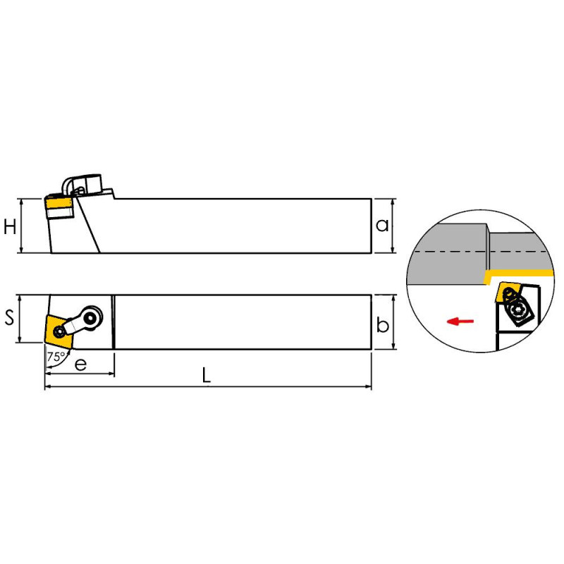 Резец токарный MCBNR3232P16 фирмы Sant предназначен для наружного точения по металлу с использованием сменных твердосплавных пластин CN.. 1606.. (в комплект поставки не входят и приобретаются отдельно). Державка токарная MCBNR3232P16 имеет ряд ключевых особенностей: Сечение резца - 32 x 32 Крепление пластины - M - Прижим клин-прихватом сверху; Исполнение - R (правое) Длина резца - 170 мм Главный угол в плане 75°.