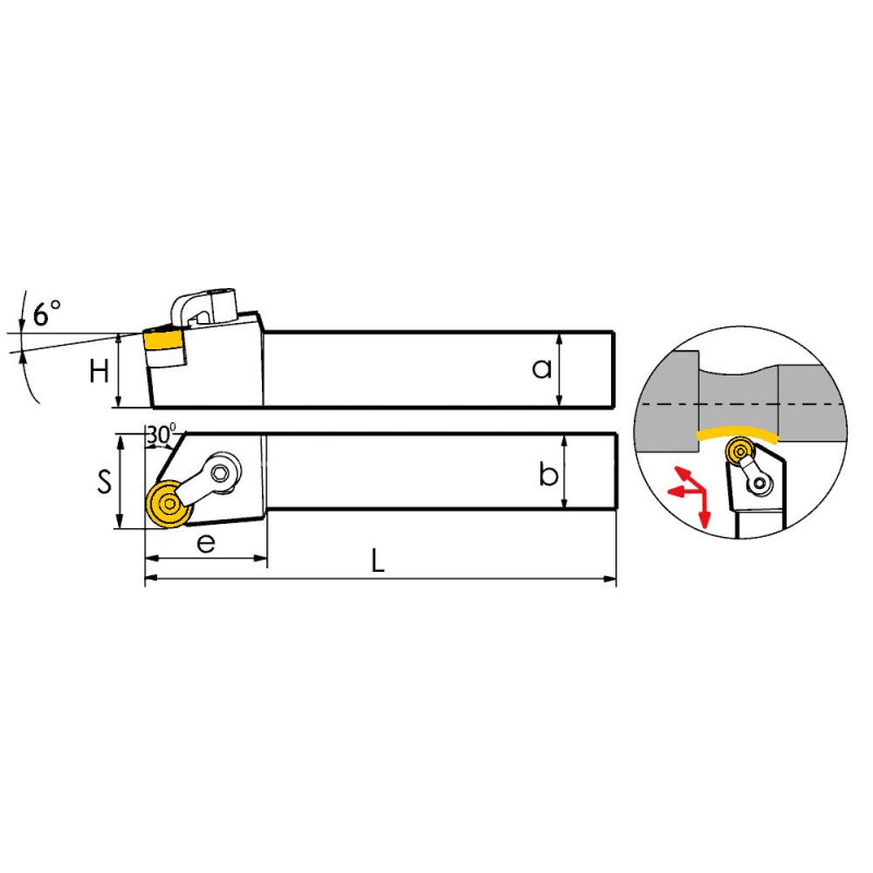 Резец токарный MRGNR3232P12 фирмы Sant предназначен для наружного точения по металлу с использованием сменных твердосплавных пластин RN..N 1204.. (в комплект поставки не входят и приобретаются отдельно). Державка токарная MRGNR3232P12 имеет ряд ключевых особенностей: Сечение резца - 32 x 32 Крепление пластины - M - Прижим клин-прихватом сверху; Исполнение - R (правое) Длина резца - 170 мм Главный угол в плане 30°.