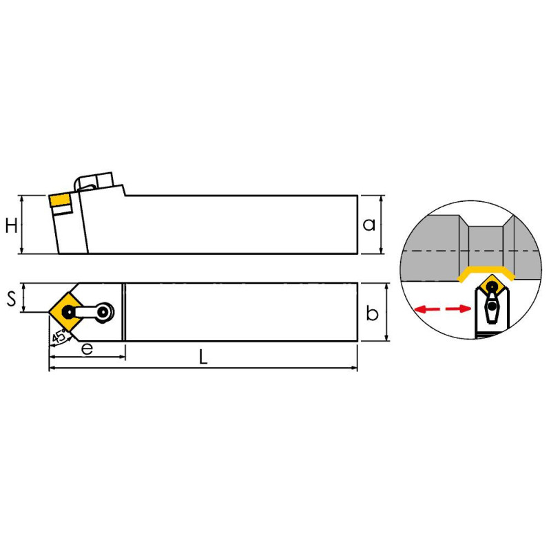 Резец токарный MSDNN2020K12 фирмы Sant предназначен для наружного точения по металлу с использованием сменных твердосплавных пластин SN.. 1204.. (в комплект поставки не входят и приобретаются отдельно). Державка токарная MSDNN2020K12 имеет ряд ключевых особенностей: Сечение резца - 20 x 20 Крепление пластины - M - Прижим клин-прихватом сверху; Исполнение - N (нейтральное) Длина резца - 125 мм Главный угол в плане 45°.