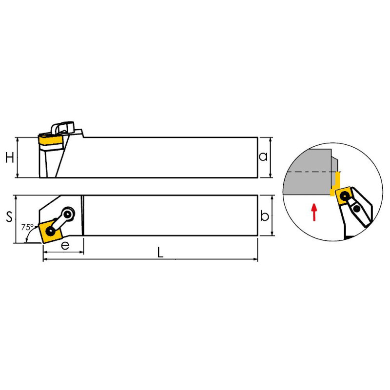 Резец токарный MSKNR2525M12 фирмы Sant предназначен для наружного точения по металлу с использованием сменных твердосплавных пластин SN.. 1204.. (в комплект поставки не входят и приобретаются отдельно). Державка токарная MSKNR2525M12 имеет ряд ключевых особенностей: Сечение резца - 25 x 25 Крепление пластины - M - Прижим клин-прихватом сверху; Исполнение - R (правое) Длина резца - 150 мм Главный угол в плане 75°.