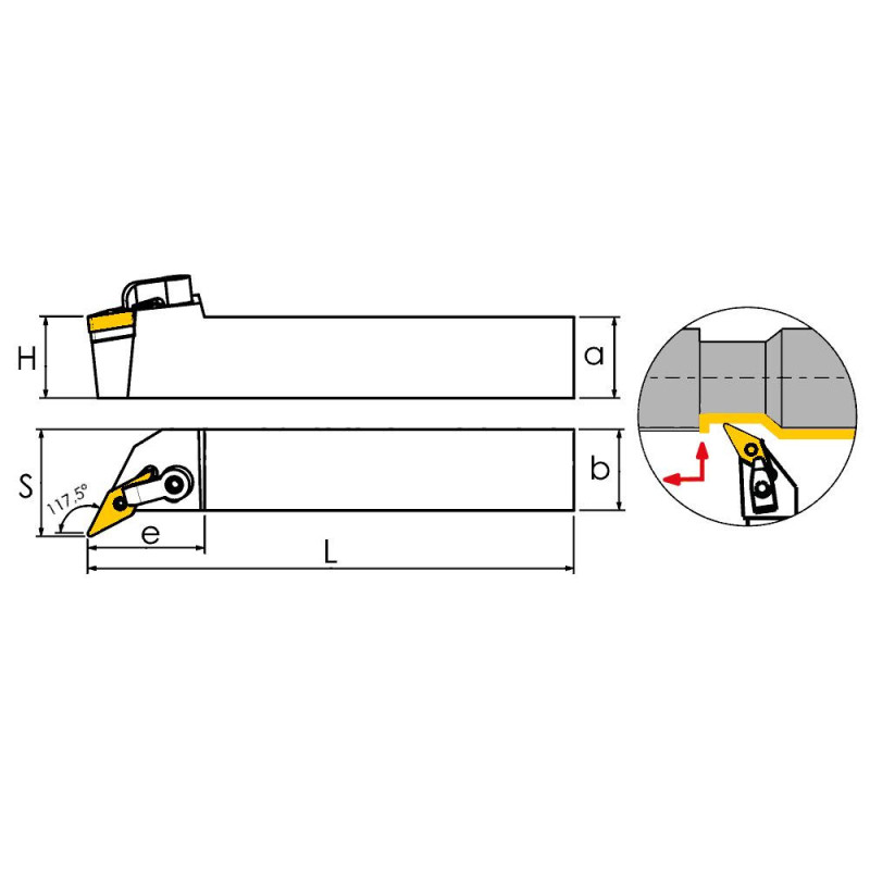 Резец токарный MVQNL3232P16 фирмы Sant предназначен для наружного точения по металлу с использованием сменных твердосплавных пластин VN.. 1604.. (в комплект поставки не входят и приобретаются отдельно). Державка токарная MVQNL3232P16 имеет ряд ключевых особенностей: Сечение резца - 32 x 32 Крепление пластины - M - Прижим клин-прихватом сверху; Исполнение - L (левое) Длина резца - 170 мм Главный угол в плане 117.5°.