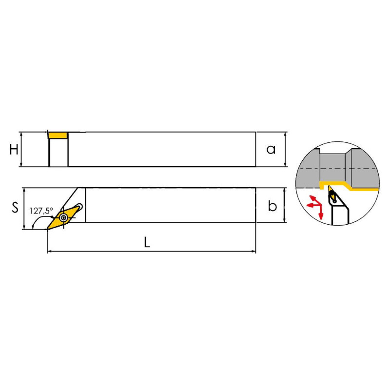 Резец токарный SVHBR2525M16 фирмы Sant предназначен для наружного точения по металлу с использованием сменных твердосплавных пластин VB..T 1604.. (в комплект поставки не входят и приобретаются отдельно). Державка токарная SVHBR2525M16 имеет ряд ключевых особенностей: Сечение резца - 25 x 25 Крепление пластины - S - Фиксация винтом; Исполнение - R (правое) Длина резца - 150 мм Главный угол в плане 127.5°.