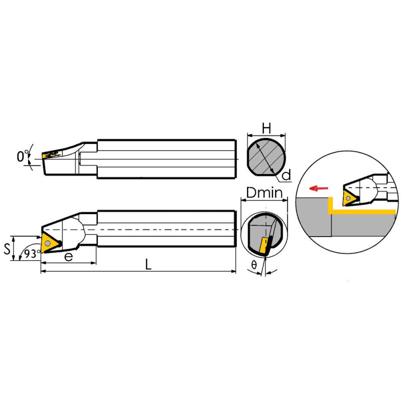 Токарный резец (державка) расточной S10K-STUCL09 фирмы SANT является идеальным инструментом для внутреннего продольного точения и подрезки торца металлических изделий при помощи сменные твердосплавные пластины типа TC..T 0902... Крепление пластины к державке S10K-STUCL09 осуществляется S - Фиксация винтом. Державка S10K-STUCL09 типа S выполнена из стали без канала для подачи СОЖ. Сечение резца составляет 10 мм, минимальный диаметр растачивания 13 мм. Длина державки S10K-STUCL09 равна 125 мм, исполнение: левое.